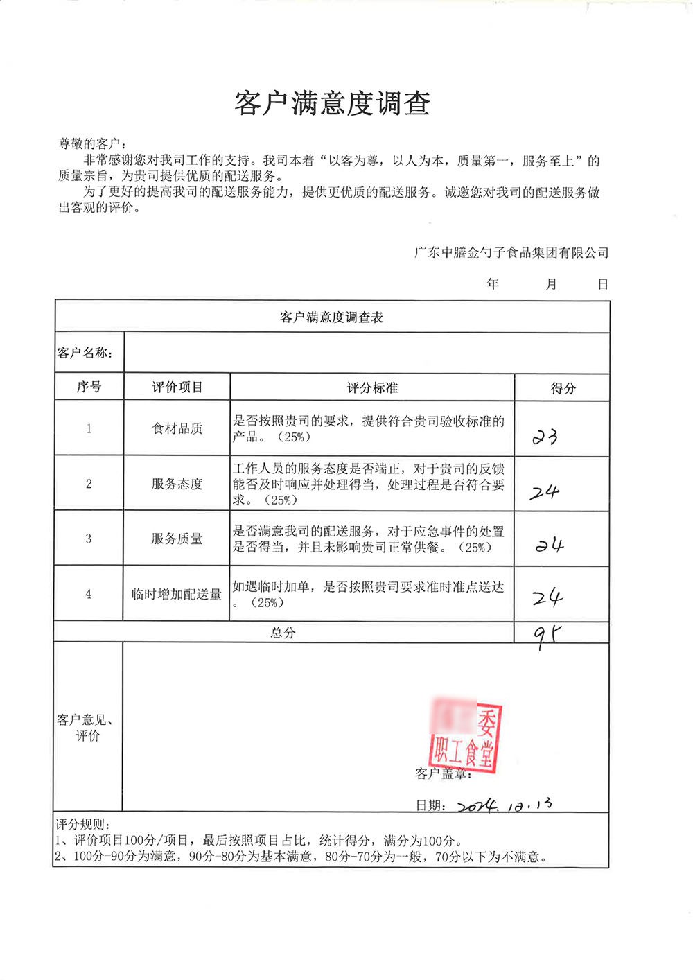 恒信彩4、2024年3月,金勺子团餐337门店获泉州市市场监督管理局赞誉,食安管理成为地区示范标准。