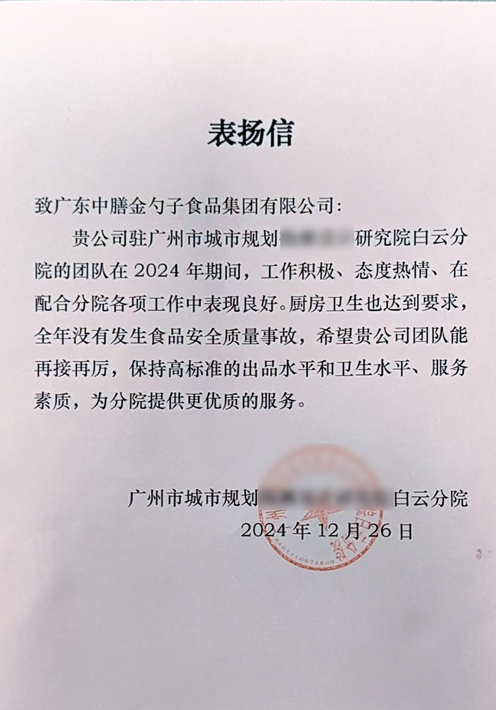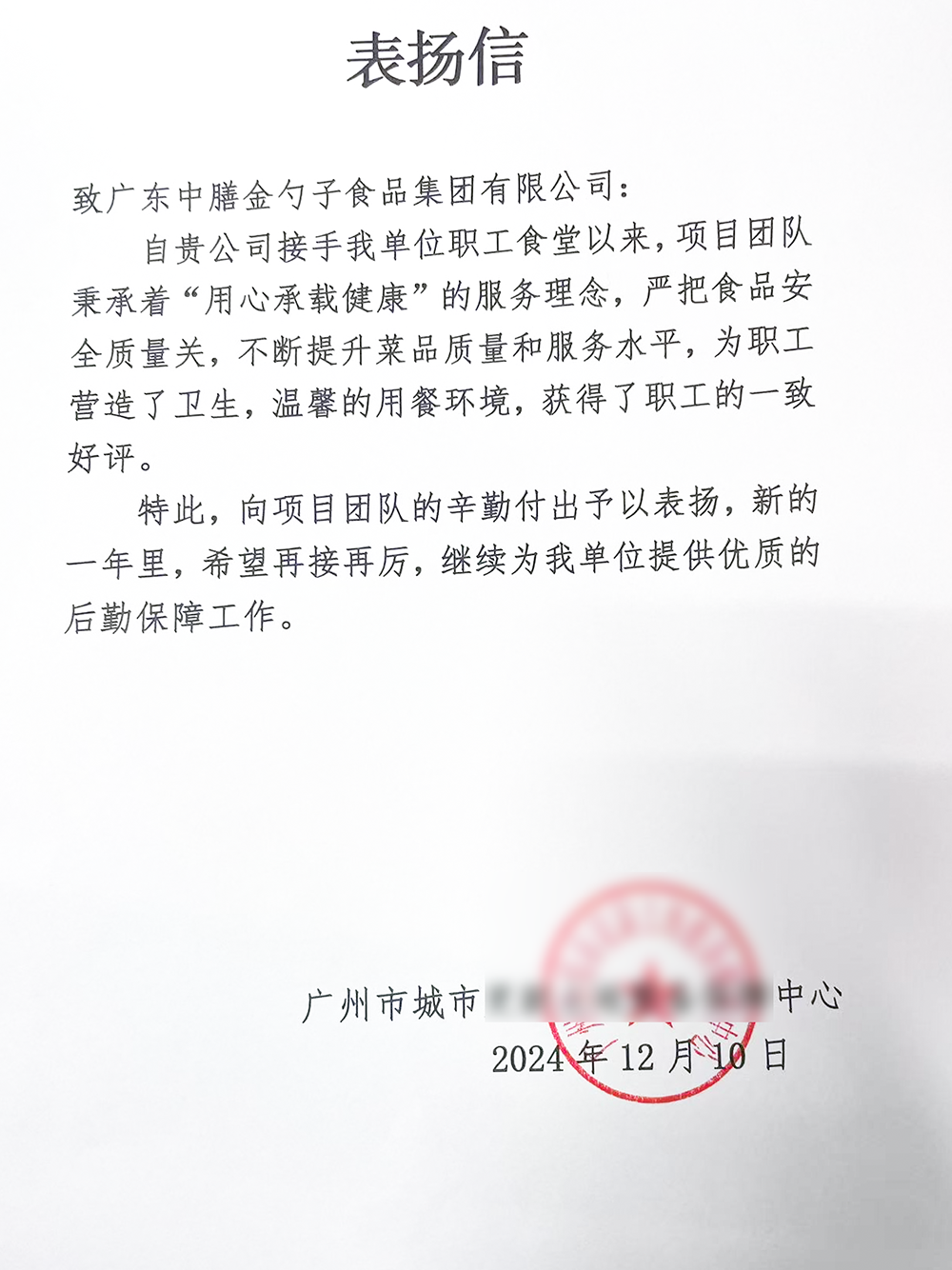 再度荣获广东团餐业甲方满意好食堂