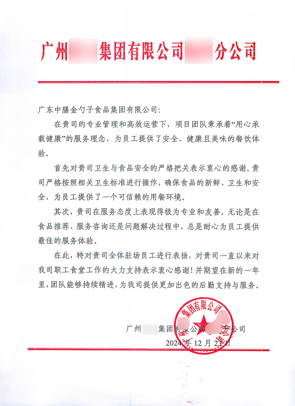 荣获2024年度十佳员工满意度企业食堂