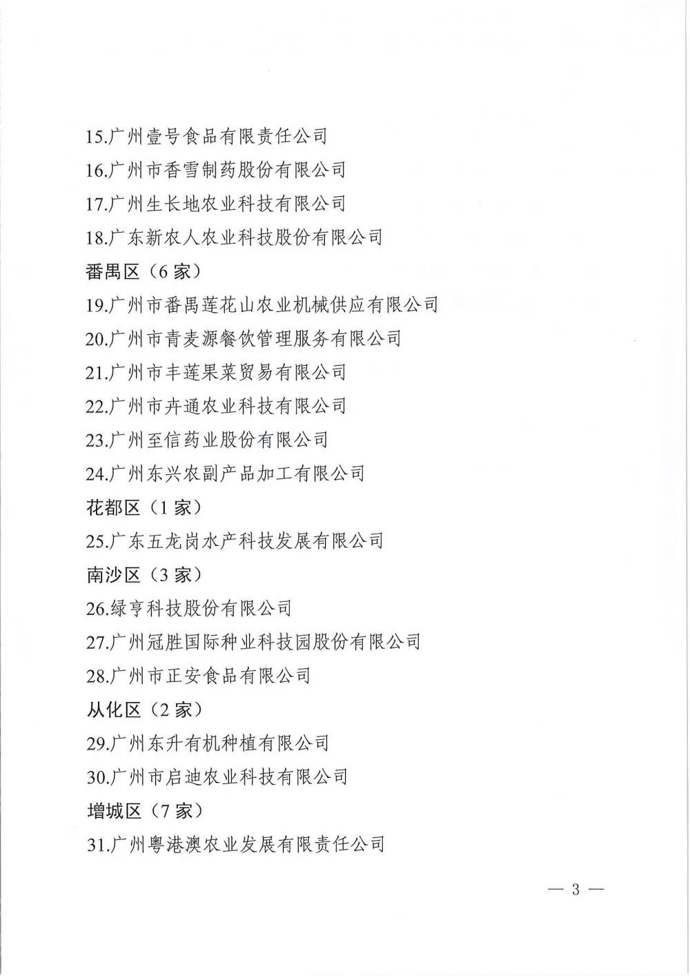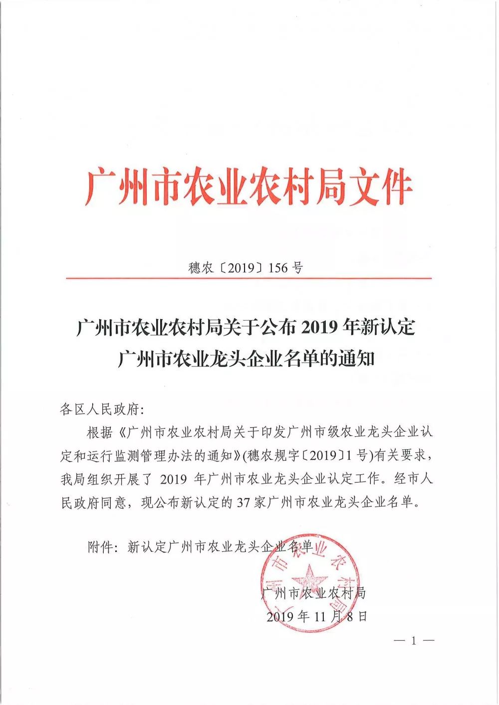 恒信彩据了解,农业农村局根据《广州市级农业龙头企业认定和运行监测管理办法》,组织开展2019年广州市农业龙头企业认定工作,旨在加强对龙头企业的运行监测,促进广州市高端高质高新都市型现代农业发展。该办法规定,市级农业龙头企业,是指在企业规模、带动力、竞争力等方面达到规定标准,并经市政府确认的企业。