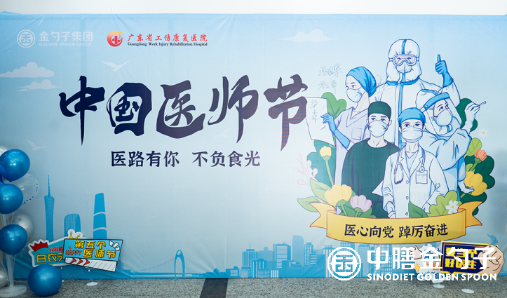 于8月19日,即疫情反复下的第五个中国医师节,金勺子集团在广东省工伤康复医院职工食堂特别策划了一场以“医路有你 不负食光”为主题的中国医师节感恩活动,用实际行动致敬医师,致敬生命守护者,致敬所有不平凡的英雄战士。