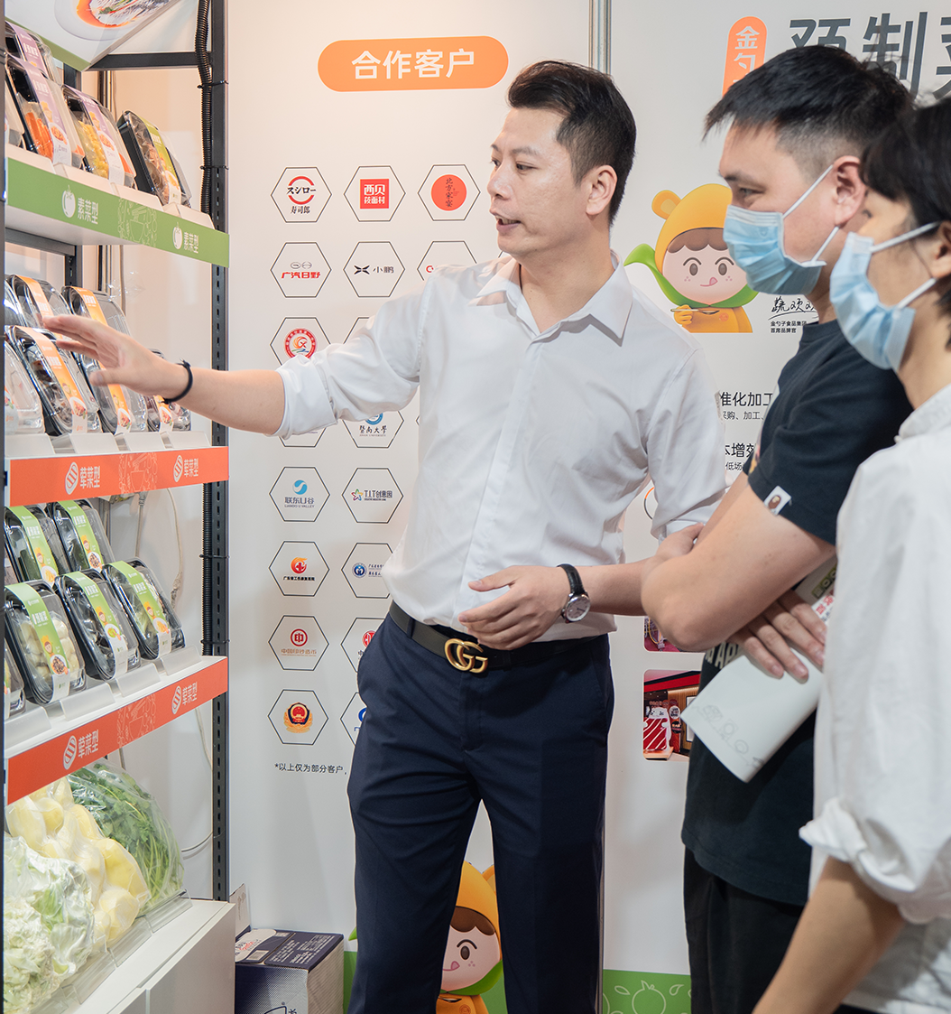 广东中膳金勺子食品集团有限公司以粤字号农业品牌“金勺子预制菜”亮相展会,推出包装鲜切菜、生鲜半成品、快手菜、火锅菜等系列营养便捷、美味健康的新品,吸引无数人前来参观交流。