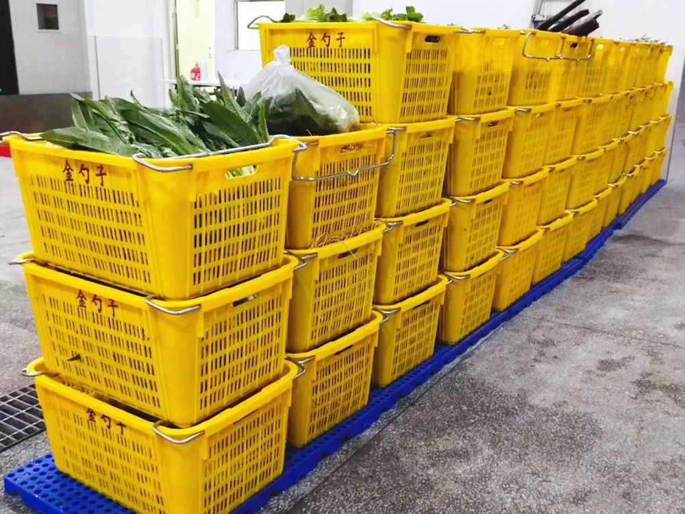 经由检验合格的蔬菜会被送往中膳金勺子配送中心,由分拣员负责进行下货、归位、分拣、清洗、装框的工作。中膳金勺子制定严格的分拣标准,不合格的蔬菜会第一时间放入淘汰区,坚决淘汰品相不佳的蔬菜,而对于叶类蔬菜,则会将烂掉、碎掉、黄掉的叶子剥去,切除带泥的部分。最后,分拣清洗完成的蔬菜会进行称重,装入安全无毒的蔬菜框,等待装车配送。