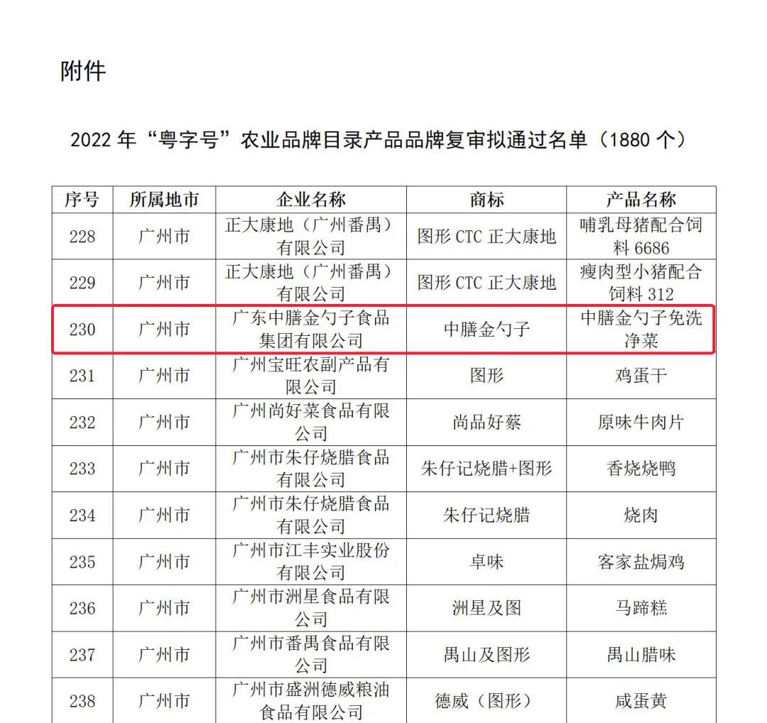 1月,我司金勺子免洗净菜再次入选“粤字号”农业品牌目录,为绘就挂满硕果、写满喜悦的现代化新农村贡献自己的力量。