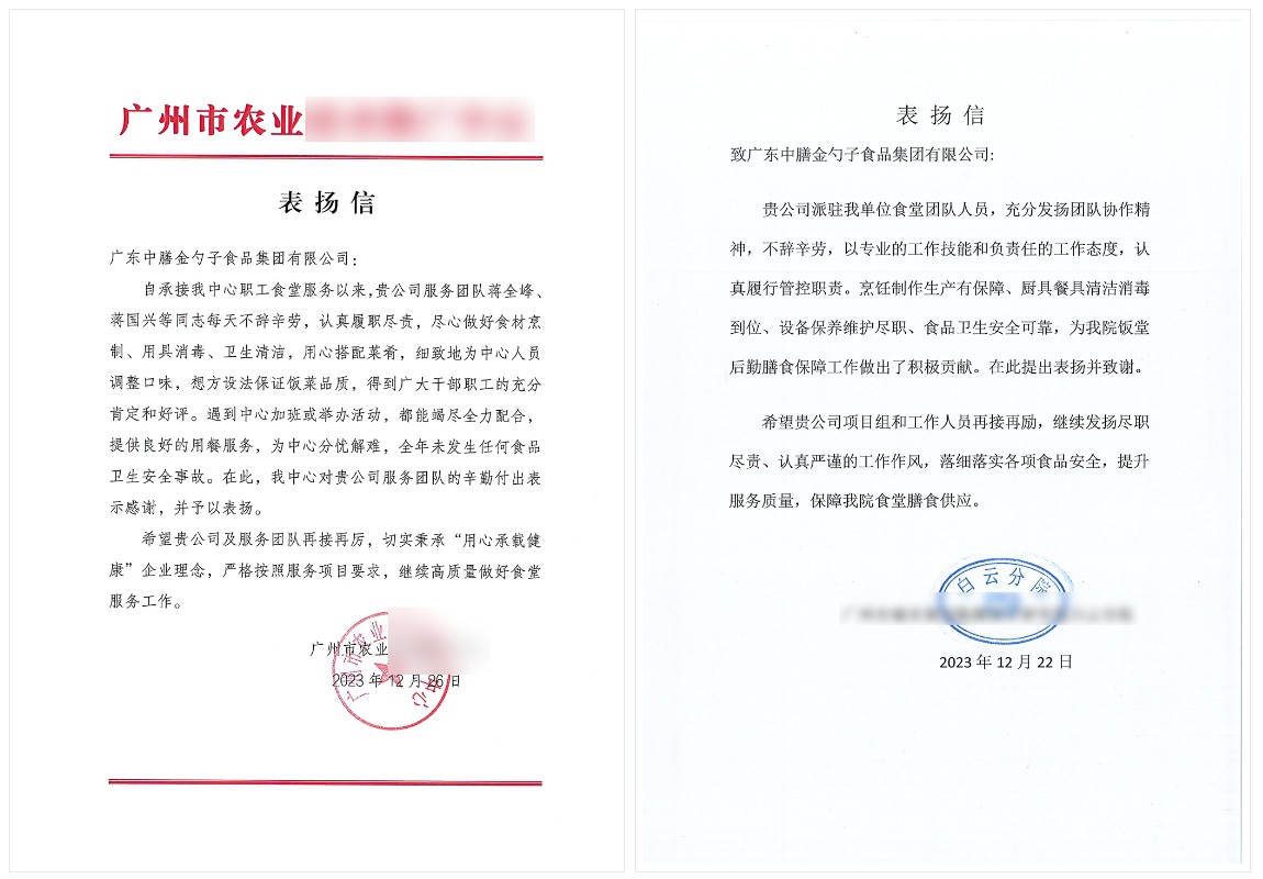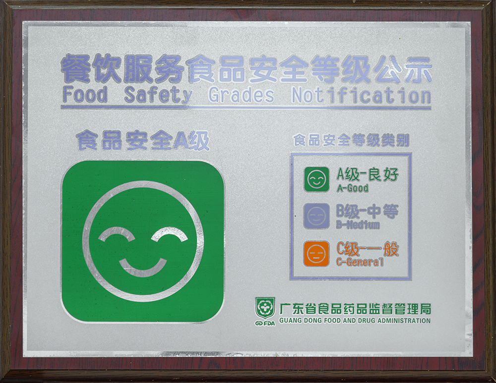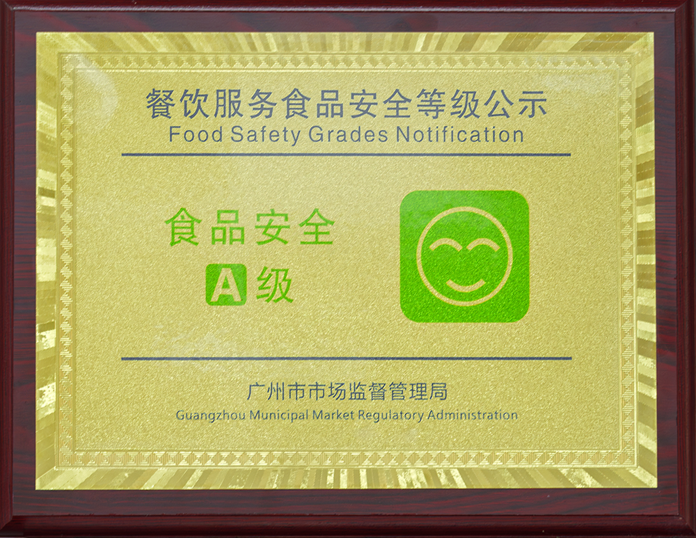 8月,金勺子团餐704门店整体服务及食品安全管理水平较高,先后被广东省食品药品监督管理局和广州市市场监督管理局授予“食品安全A级”荣誉。