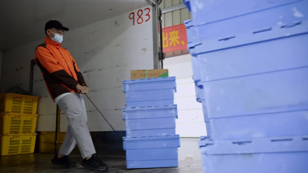 恒信彩集团总部配送事业部负责人刘小鹏表示,面对暴雨等极端天气情况,针对主要农副产品适当加大储备力度,增强市场供应抗波动能力,并提前沟通应急货品调配,确保出现紧急情况,可以迅速组织从周边区域调配充足货品满足市场供应需求。 每天凌晨,金勺子食品集团总部分拨中心灯火通明。经过食安检测合格的食材会到达分拣配送大厅,分拣员将按照对应客户编码订单情需求完成基本分拣工作,并有序开展打包、装车、配送等工作。 凌晨的忙碌与守护 为保证门店货品充足,金勺子分拨中心不分昼夜调货分拣运输,延长分拣时间,生产能力达到平常的3-4倍。据了解,目前金勺子食品集团总部供应链中心已从多个直采基地增调的200多吨菜肉蛋奶等民生商品。加大食材储备