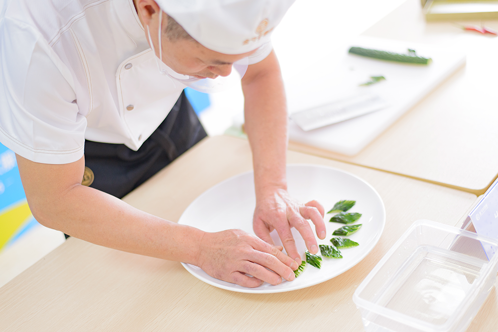 笔试结束后,素菜拼盘竞赛更加精彩纷呈。素菜拼盘比赛现场,参赛者们巧手翻飞,色彩丰富的蔬菜在他们的手中变成了一件件精美的艺术品。每一份拼盘都讲述着厨师们对美食的热爱,对生活的理解。