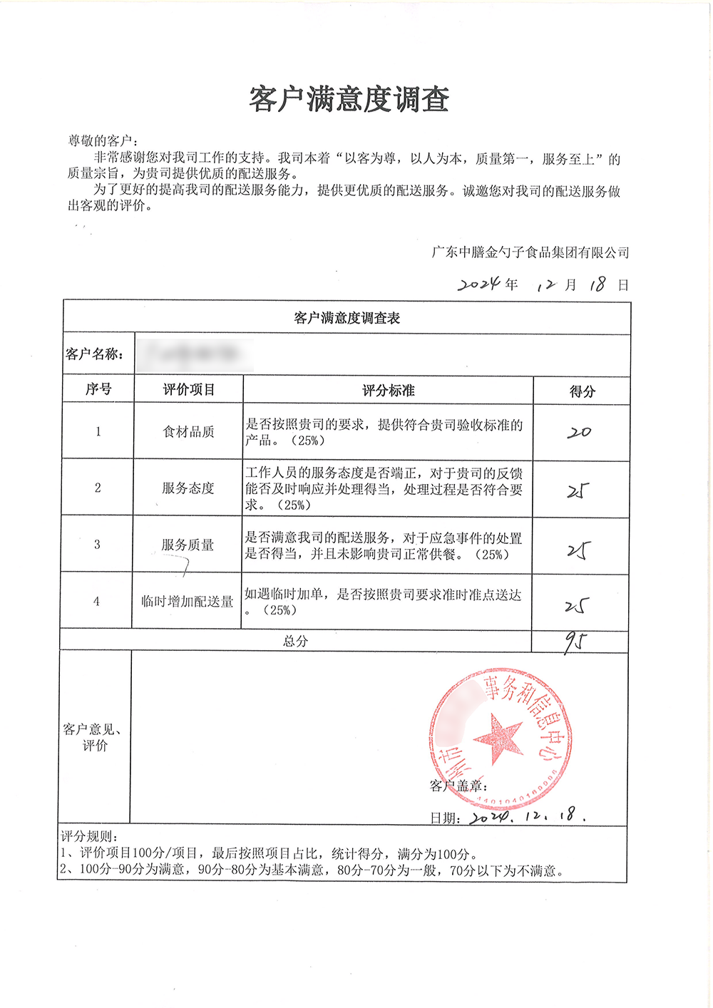 恒信彩4、2024年3月,金勺子团餐337门店获泉州市市场监督管理局赞誉,食安管理成为地区示范标准。