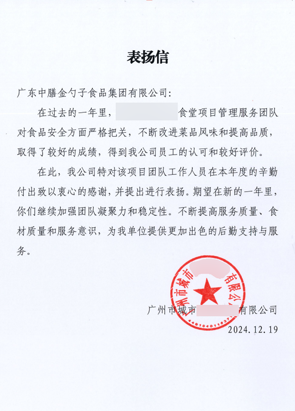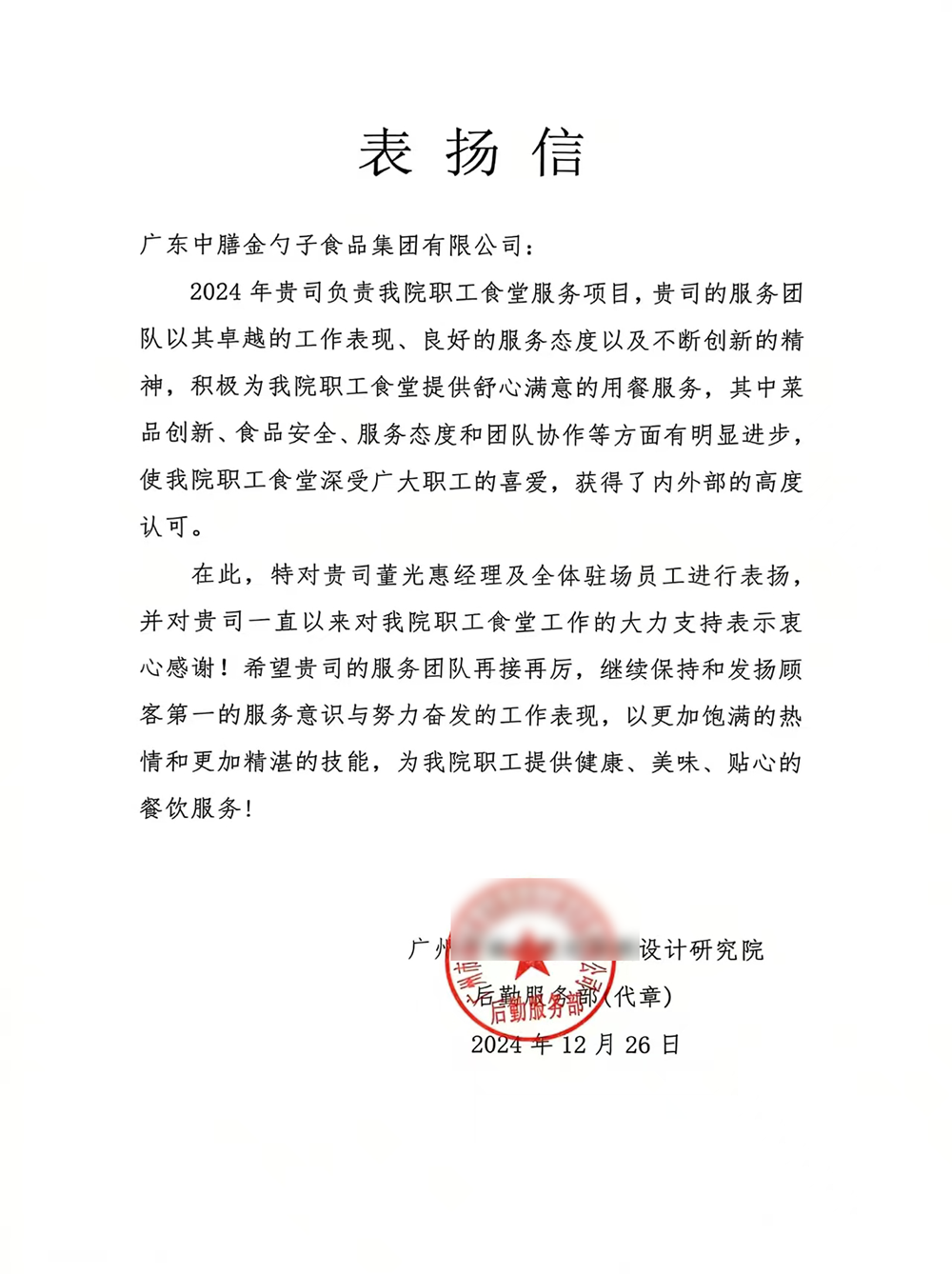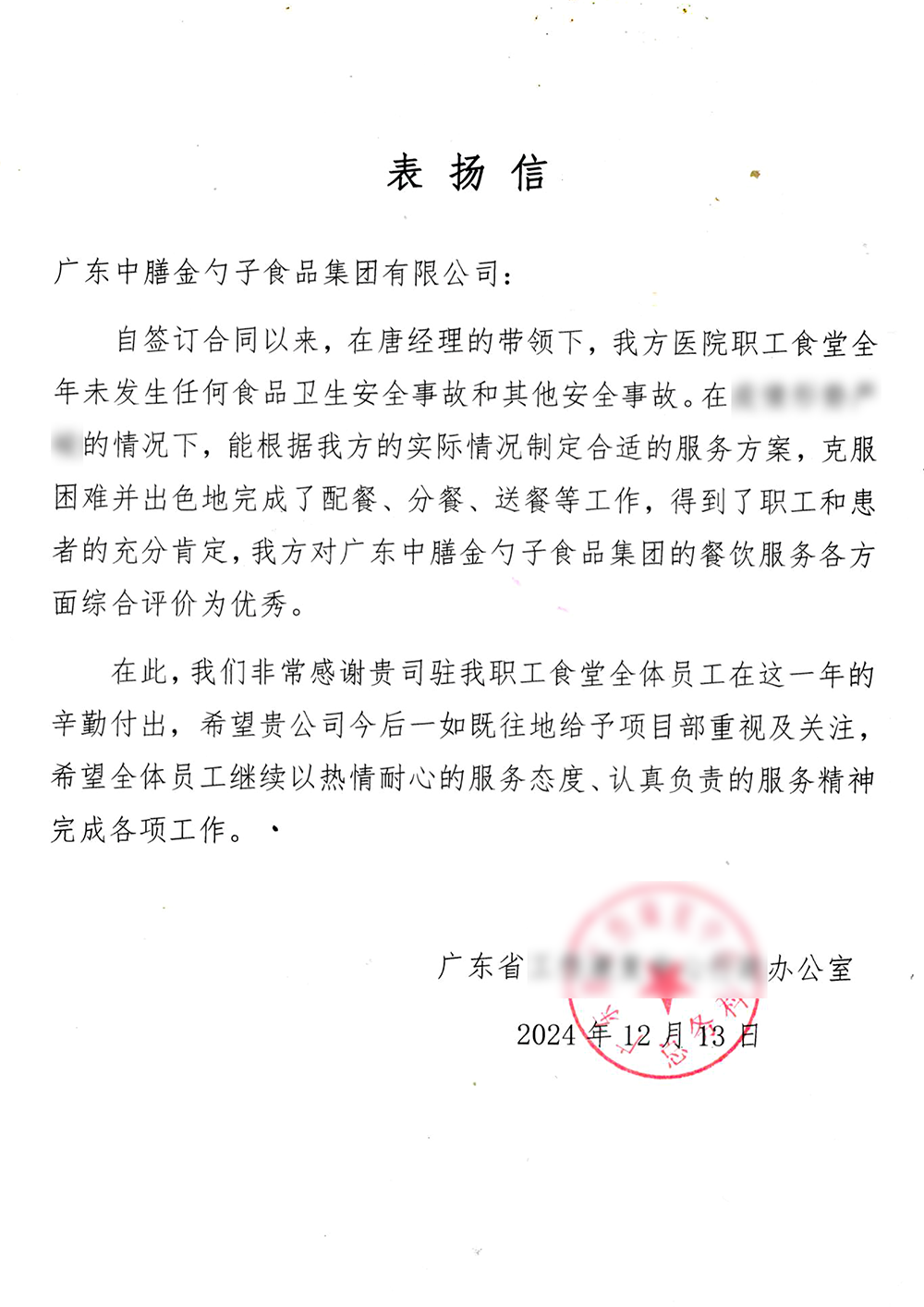 荣获2024年度十佳员工满意度企业食堂