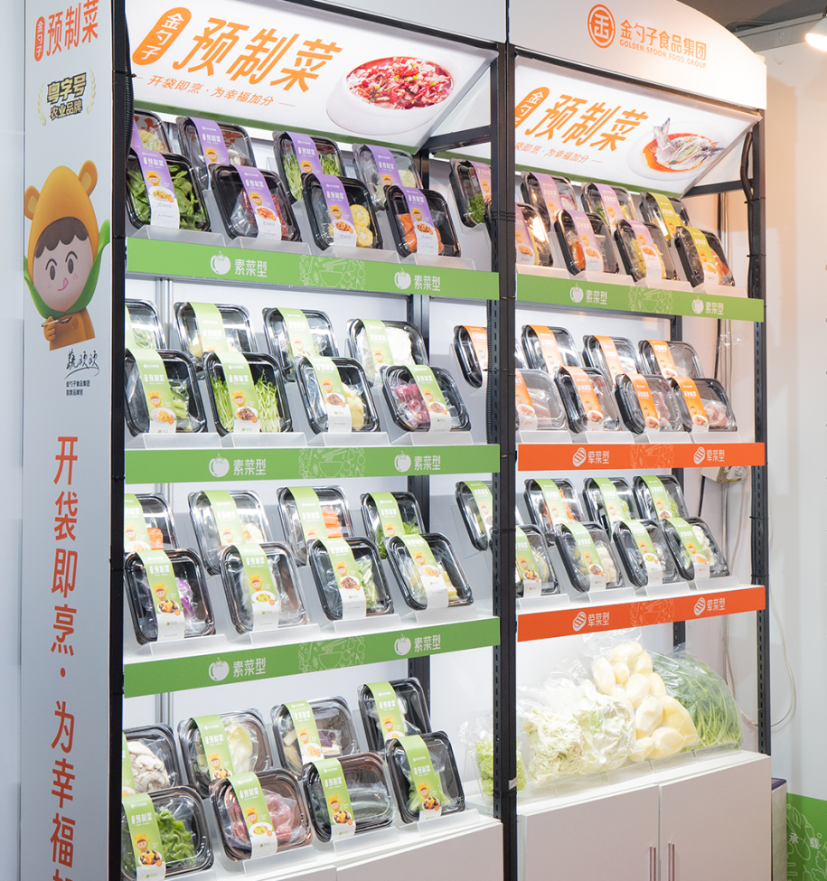 广东中膳金勺子食品集团有限公司以粤字号农业品牌“金勺子预制菜”亮相展会,推出包装鲜切菜、生鲜半成品、快手菜、火锅菜等系列营养便捷、美味健康的新品,吸引无数人前来参观交流。