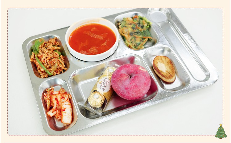 为增强活动的氛围感和体验感,食堂内部进行了精心布置。可爱的卡通海报、驯鹿的场景、丰富的礼品、动听的音乐、各种节日特色供餐共同治愈焦虑填满幸福感,让员工感受到金勺子团队的服务热情。