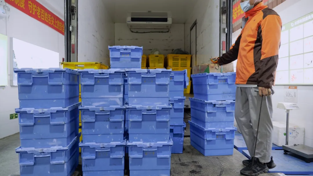 恒信彩集团总部配送事业部负责人刘小鹏表示,面对暴雨等极端天气情况,针对主要农副产品适当加大储备力度,增强市场供应抗波动能力,并提前沟通应急货品调配,确保出现紧急情况,可以迅速组织从周边区域调配充足货品满足市场供应需求。 每天凌晨,金勺子食品集团总部分拨中心灯火通明。经过食安检测合格的食材会到达分拣配送大厅,分拣员将按照对应客户编码订单情需求完成基本分拣工作,并有序开展打包、装车、配送等工作。 凌晨的忙碌与守护 为保证门店货品充足,金勺子分拨中心不分昼夜调货分拣运输,延长分拣时间,生产能力达到平常的3-4倍。据了解,目前金勺子食品集团总部供应链中心已从多个直采基地增调的200多吨菜肉蛋奶等民生商品。加大食材储备