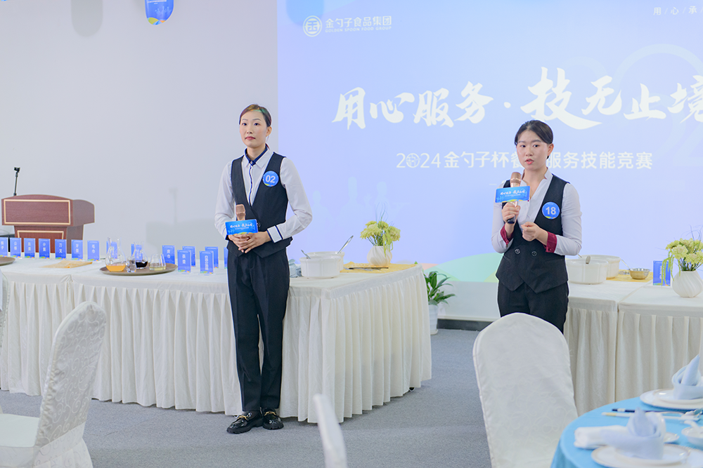 2024金勺子杯“用心服务·技无止境”餐饮服务技能竞赛于5月25日在金勺子食品集团总部完美落下帷幕。这是一场集理论知识与实践于一体的盛宴,既展示了金勺子食品集团餐饮服务业员工的专业素养,又传递了金勺子食品集团对服务质量的极致追求。